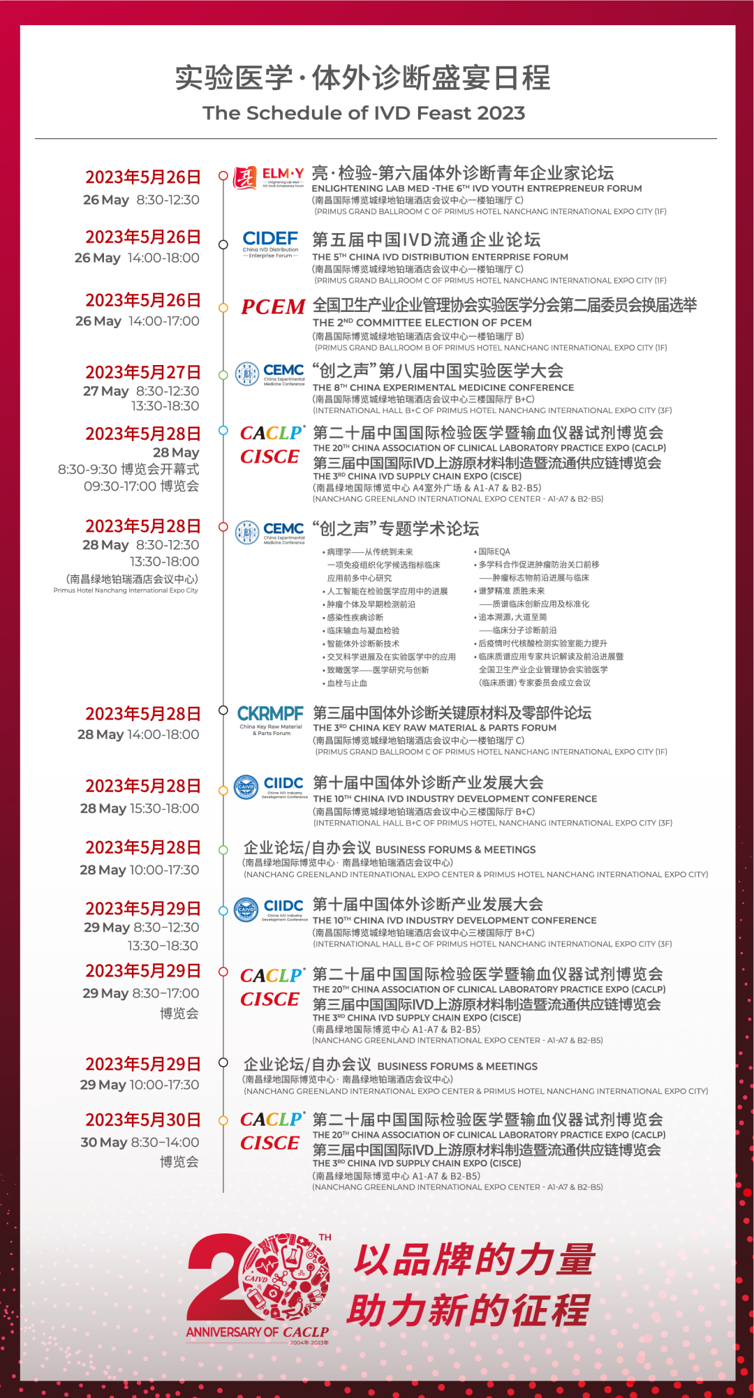 第二十屆中國國際檢驗醫(yī)學暨輸血儀器試劑博覽會(CACLP),第三屆中國國際IVD上游原材料制造暨流通供應(yīng)鏈博覽會(CISCE)將于2023年5月28日-30日在南昌綠地國際博覽中心舉行。