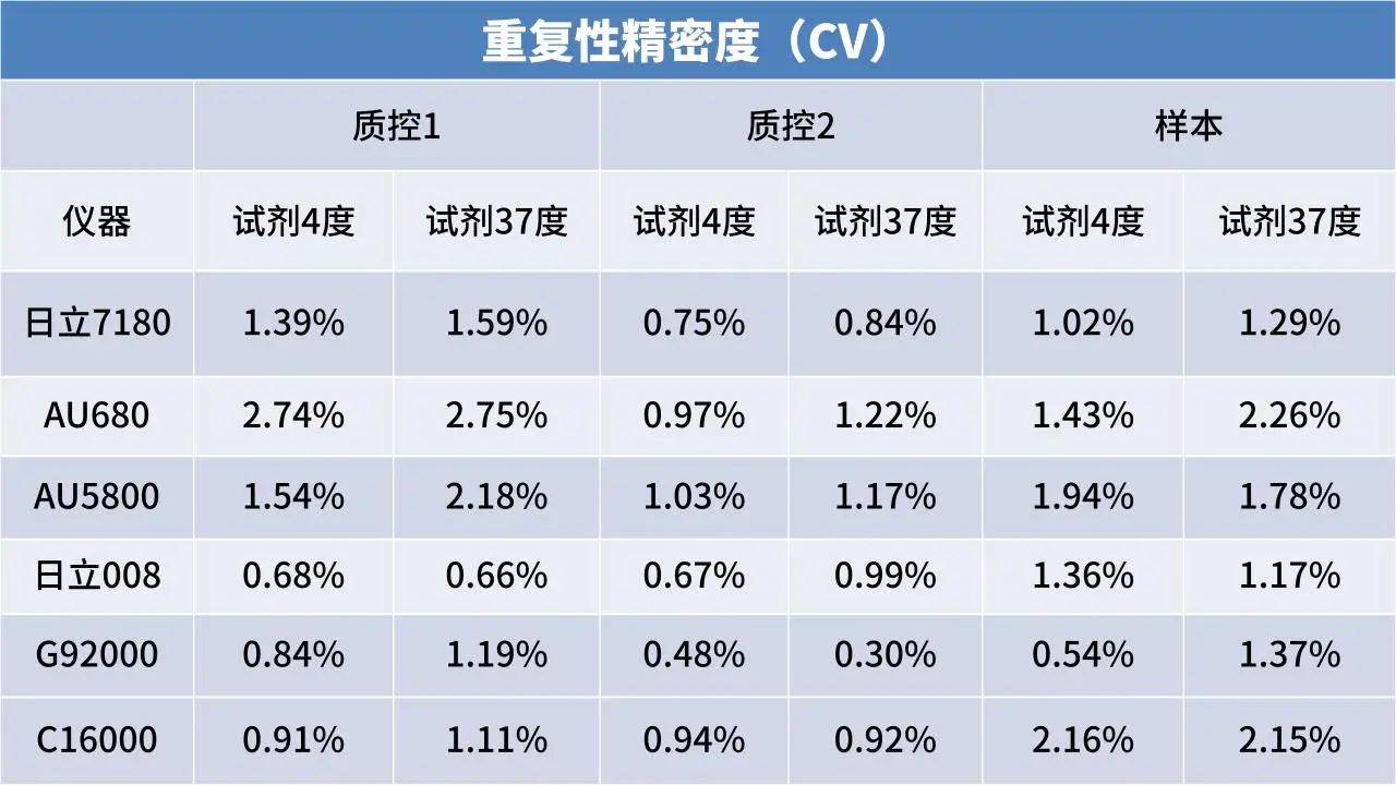 精密度優(yōu):各機型高低值質(zhì)控、樣本CV<3%