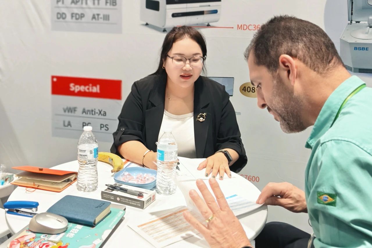 九強(qiáng)生物的產(chǎn)品以精準(zhǔn)的檢測(cè)性能、高效的工作效率和可靠的質(zhì)量贏得了廣泛贊譽(yù)。展會(huì)現(xiàn)場(chǎng),九強(qiáng)生物的展位始終人頭攢動(dòng),來自世界各地的參觀者紛紛駐足,與公司專業(yè)團(tuán)隊(duì)深入交流,了解產(chǎn)品的特點(diǎn)和優(yōu)勢(shì)。九強(qiáng)團(tuán)隊(duì)以熱情、專業(yè)的態(tài)度接待每一位參觀者,詳細(xì)介紹產(chǎn)品的技術(shù)亮點(diǎn)和臨床應(yīng)用經(jīng)驗(yàn),與客戶分享九強(qiáng)生物在體外診斷領(lǐng)域的創(chuàng)新理念和實(shí)踐成果。通過深入的交流,九強(qiáng)生物不僅讓世界更好地了解了中國體外診斷技術(shù)的發(fā)展水平,也進(jìn)一步拓展了國際業(yè)務(wù)交流渠道,與眾多潛在客戶建立了緊密聯(lián)系。