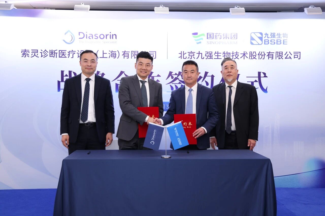 2025年12月3日,國內(nèi)體外診斷領(lǐng)軍企業(yè)北京九強(qiáng)生物技術(shù)股份有限公司與全球知名診斷公司索靈診斷(Diasorin)正式簽署戰(zhàn)略合作協(xié)議。雙方秉持“平等互利、優(yōu)勢互補(bǔ)、長期共贏”的核心原則,強(qiáng)強(qiáng)聯(lián)合、深度協(xié)同,共同開啟精準(zhǔn)診斷領(lǐng)域創(chuàng)新發(fā)展新篇章,為全球醫(yī)療健康事業(yè)注入強(qiáng)勁動力!