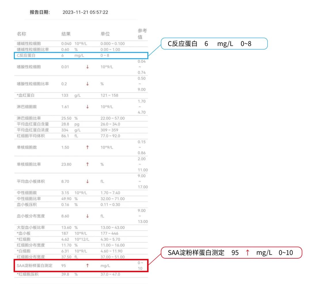 在常見的血液檢測指標中,除常規(guī)的血常規(guī)、C反應(yīng)蛋白(CRP)檢測外,另一炎癥指標——血清淀粉樣蛋白A(SAA)的檢測在該類疾病的診療中敏感性備受關(guān)注。