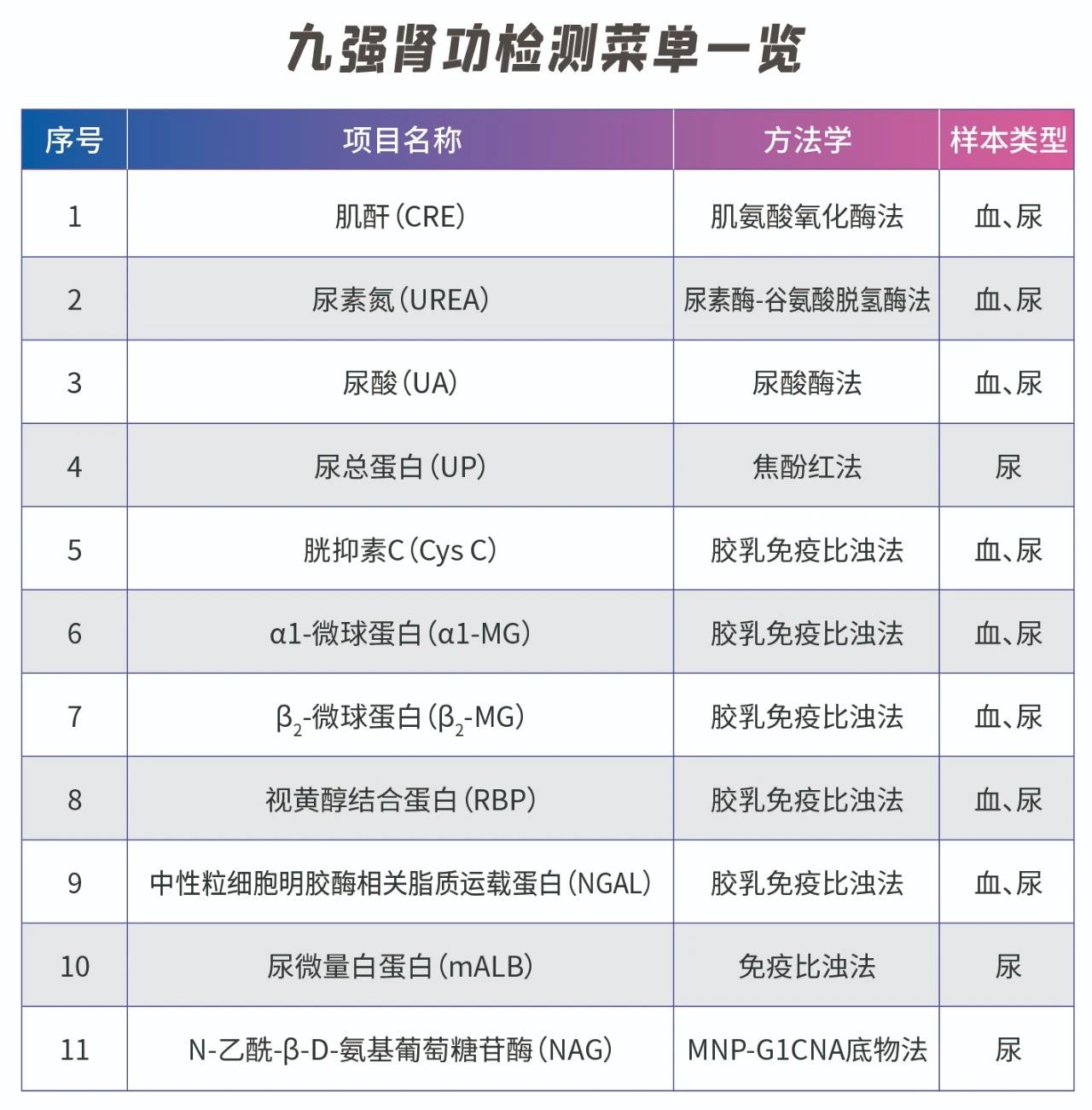 常規(guī)項目由于對早期腎損傷敏感性不足,在反應(yīng)腎臟功能上常存在一定的滯后性,因此需要一些靈敏的檢測指標(biāo),幫助我們在早期發(fā)現(xiàn)腎臟異常,以便及早開始治療。胱抑素C(Cys C)、視黃醇結(jié)合蛋白(RBP)、α1微量球蛋白(α1-MG)及中性粒細(xì)胞明膠酶相關(guān)脂質(zhì)運(yùn)載蛋白(NGAL)這些指標(biāo)在反映早期腎臟功能損傷上有明顯優(yōu)勢。